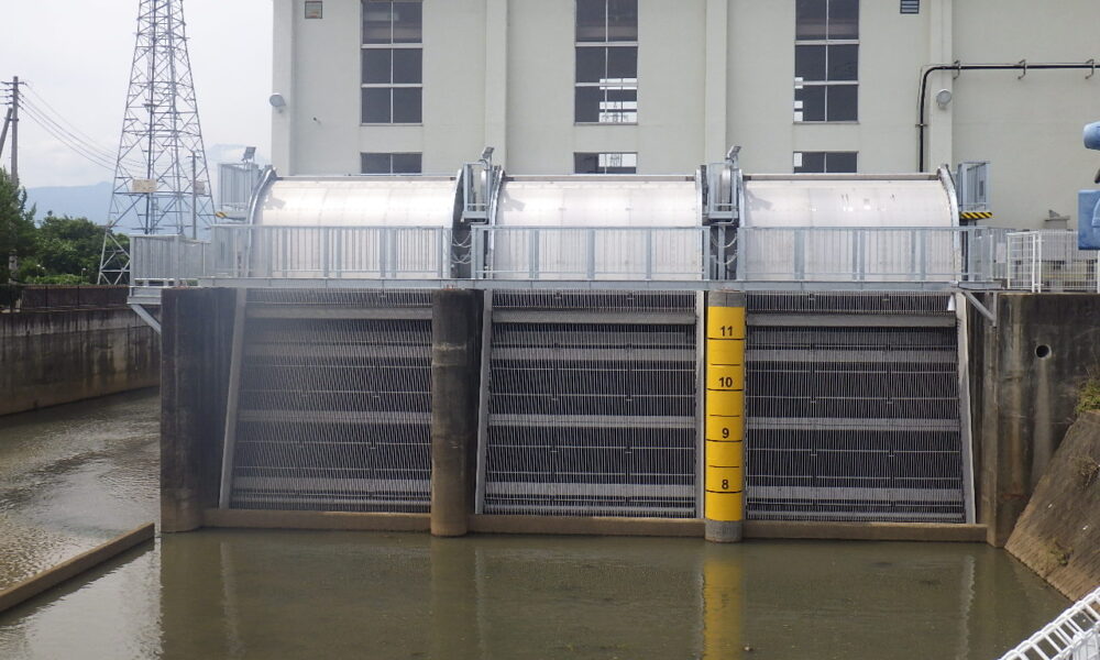 除塵機は排水機場やポンプ場に設置される設備になります。用途は水面や水中を流れてくる様々な塵芥を除塵機のレーキと呼ばれる爪で掻き揚げ、下流に流下させないことです。掻き揚げた塵芥は水平ベルトコンベアにて貯留場所へ搬送します。また、除塵機の下流側には排水用のポンプが設置されており、ポンプ保護の役割も担っています。動力は主に電動で、単独操作はもちろん、ポンプ設備との自動連動操作を行うことも可能です。
